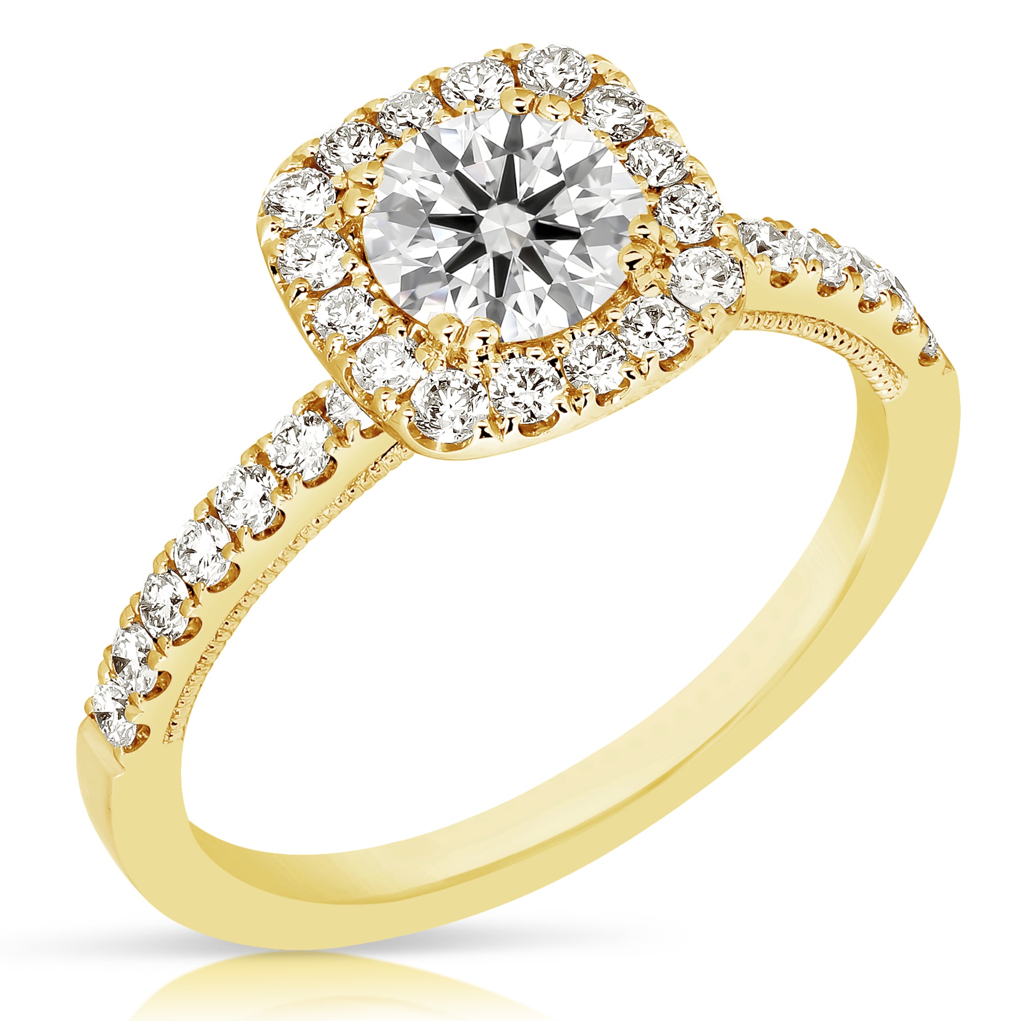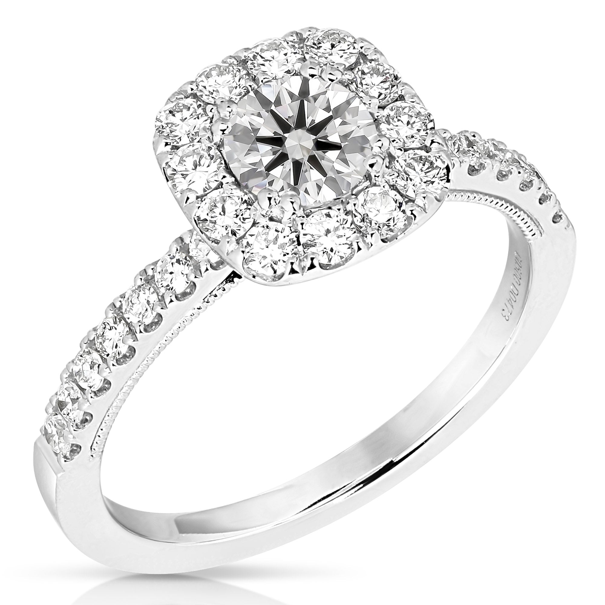1/2 Ct Round Center Diamond Cushion Halo Complete Engagement Ring