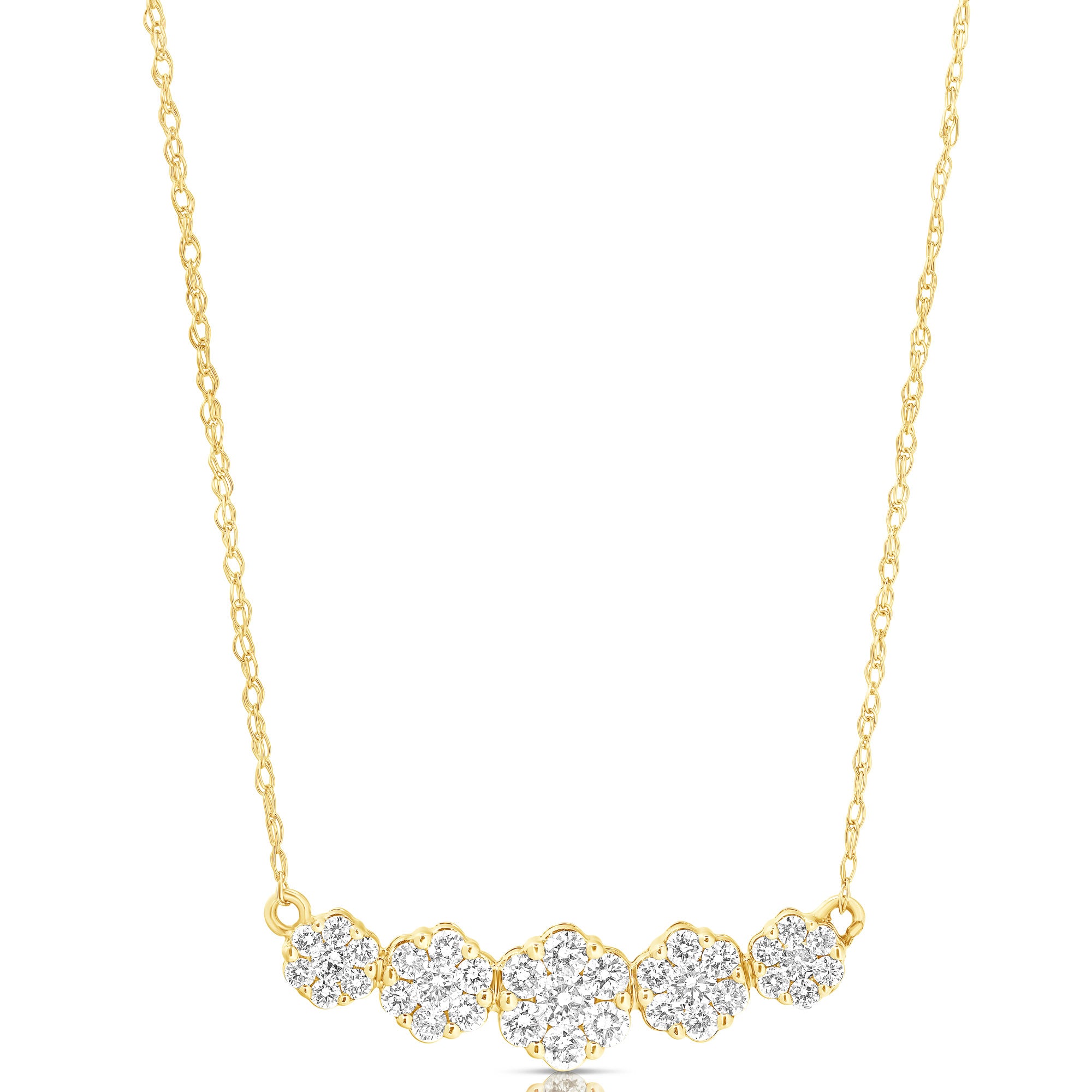 1/2 Ctw Graduated Flower Cluster Diamond Necklace