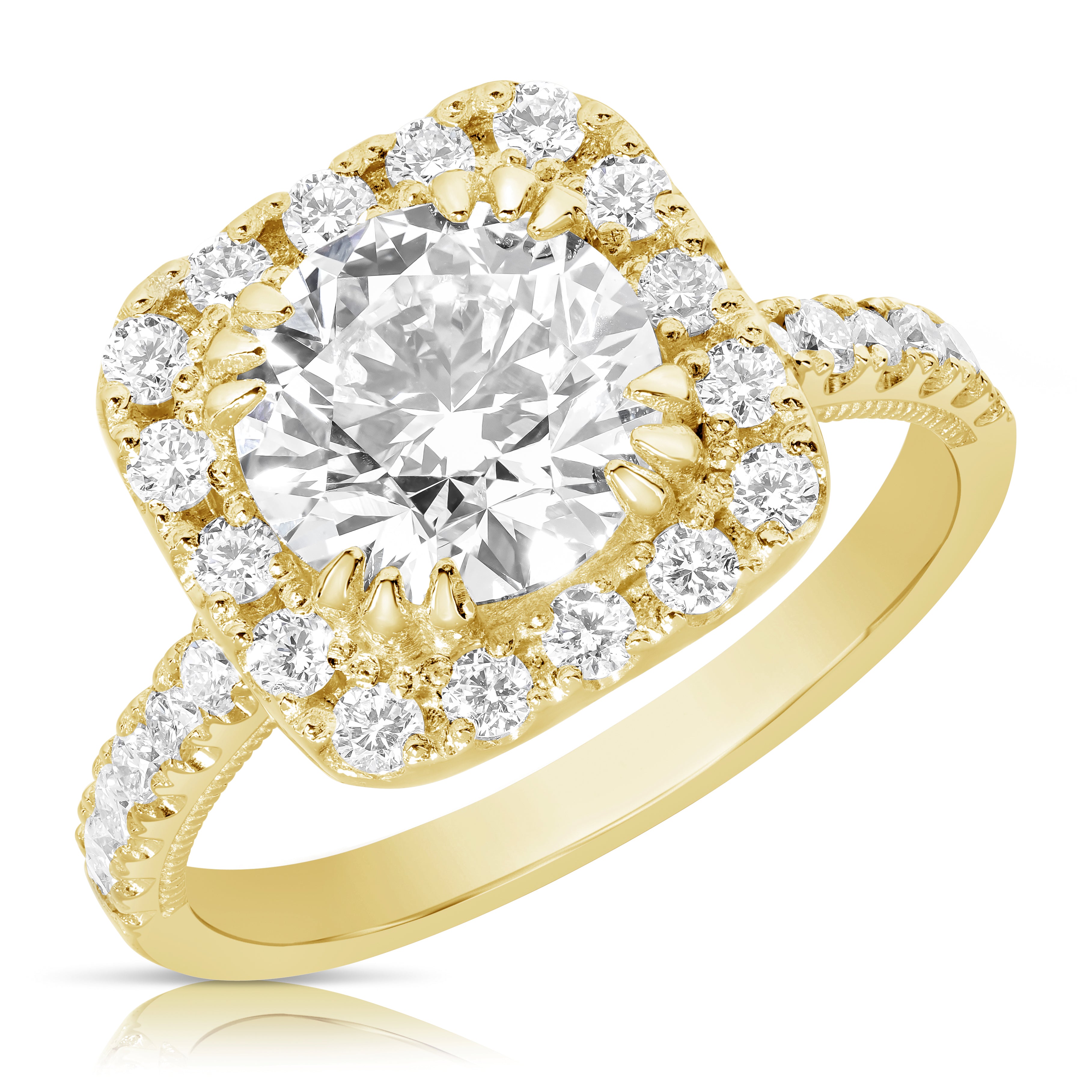 2 Ct Round Center Lab Grown Diamond Cushion Halo Engagement Ring
