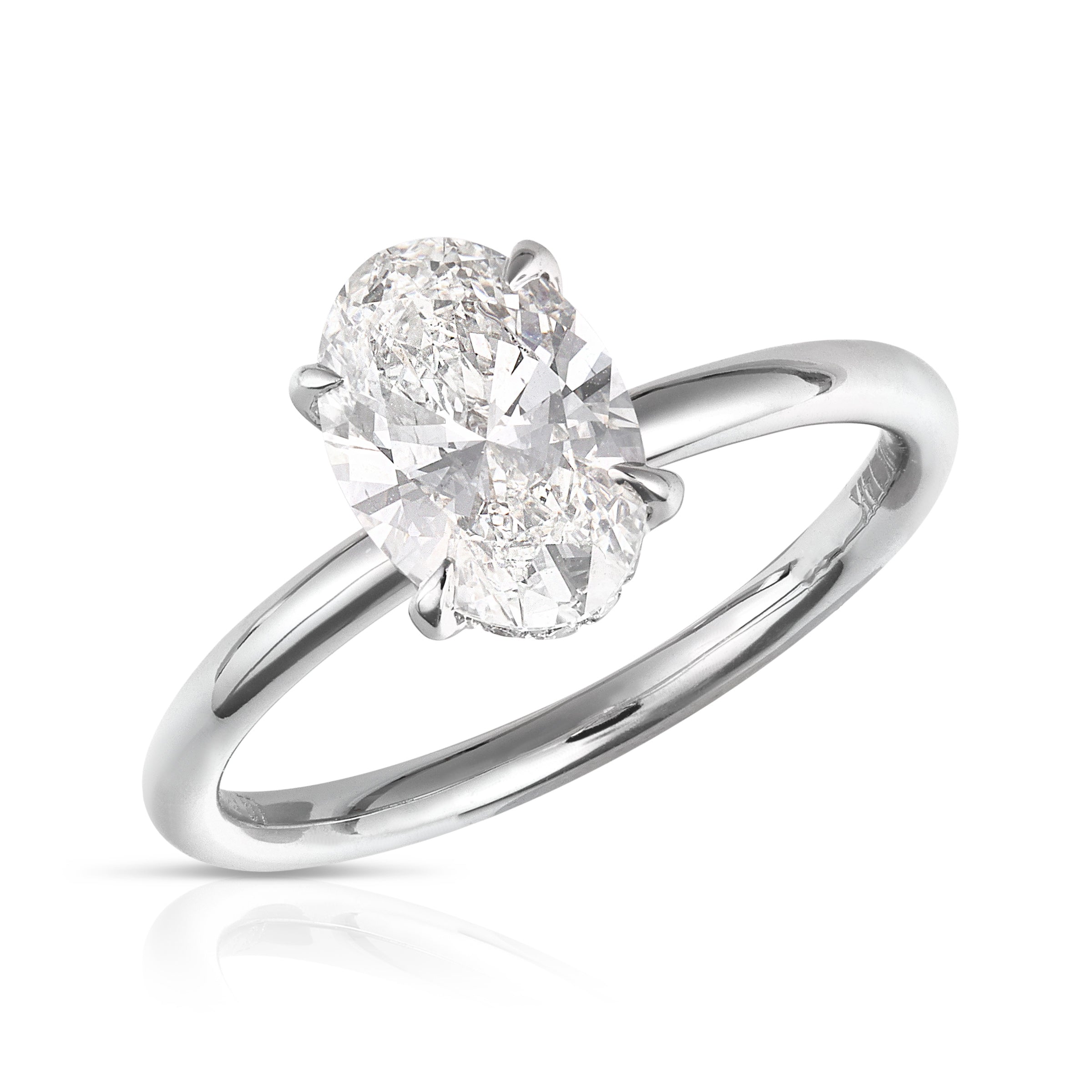 2 Oval Center Lab Grown Diamond Hidden Halo Solitaire Ring
