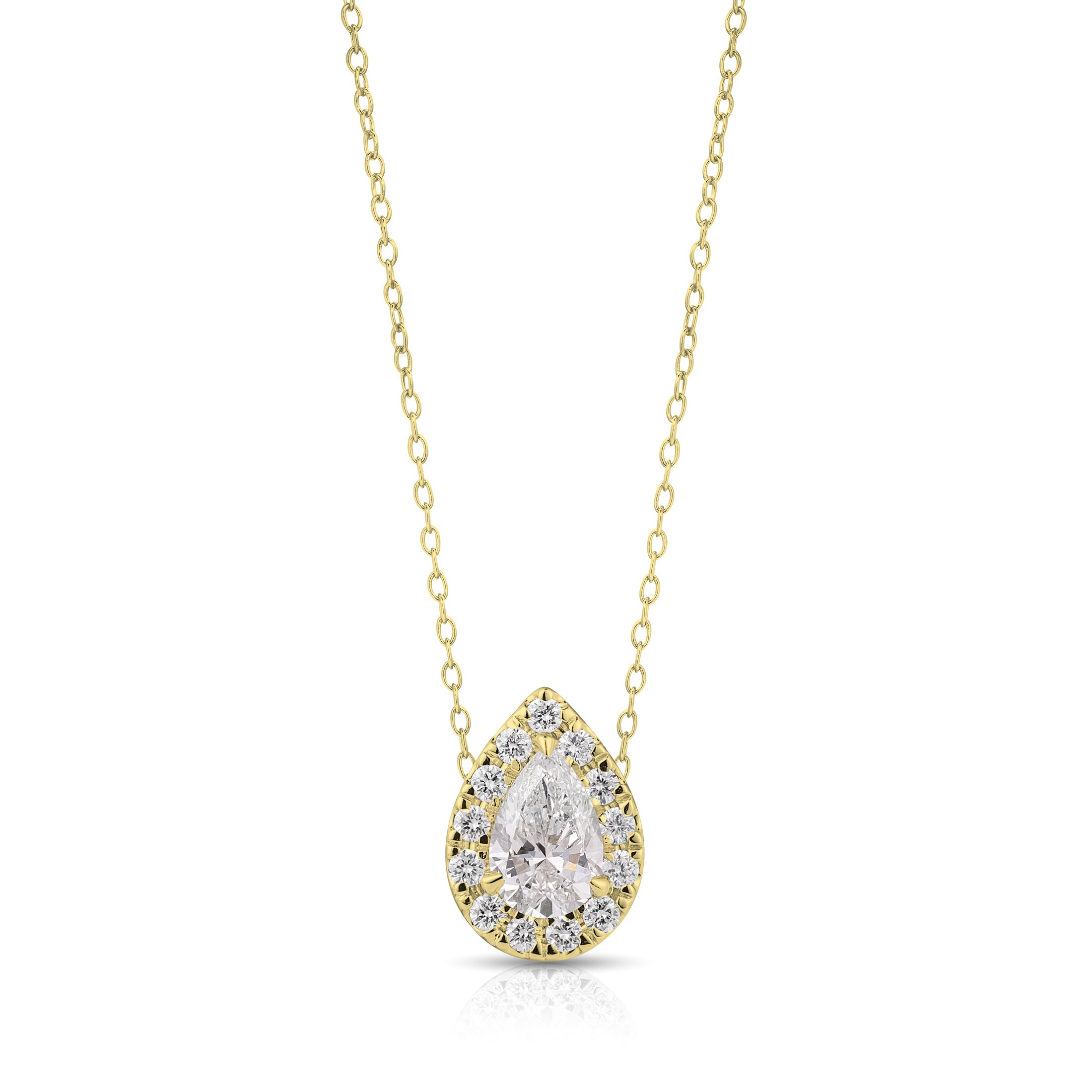 3/4 Ct Center Pear Shape Lab Grown Diamond Halo Pendant