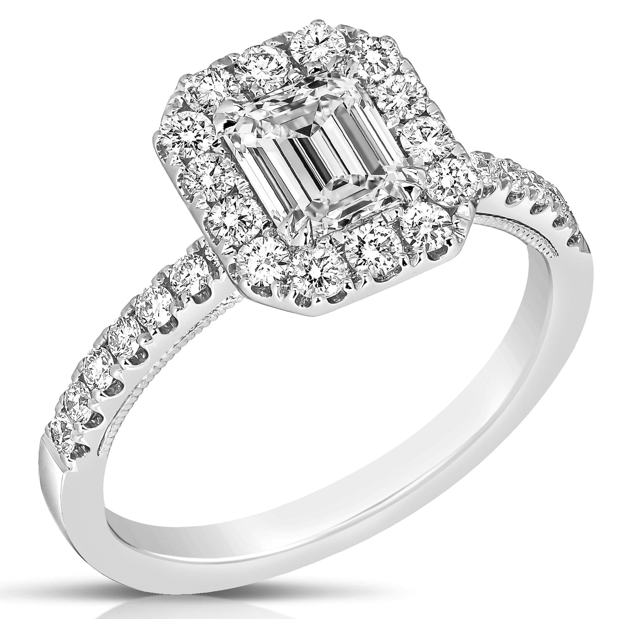 3/4 Ct Emerald Cut Center Diamond Halo Engagement Ring