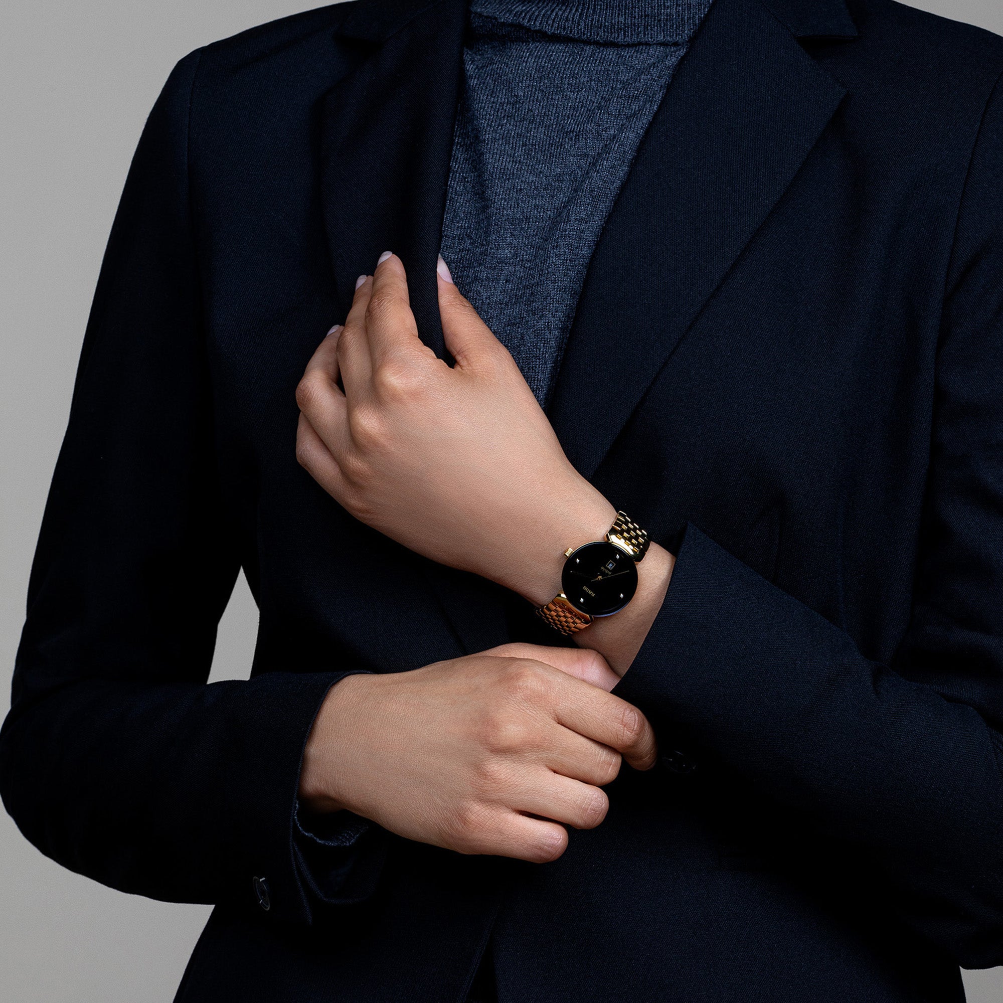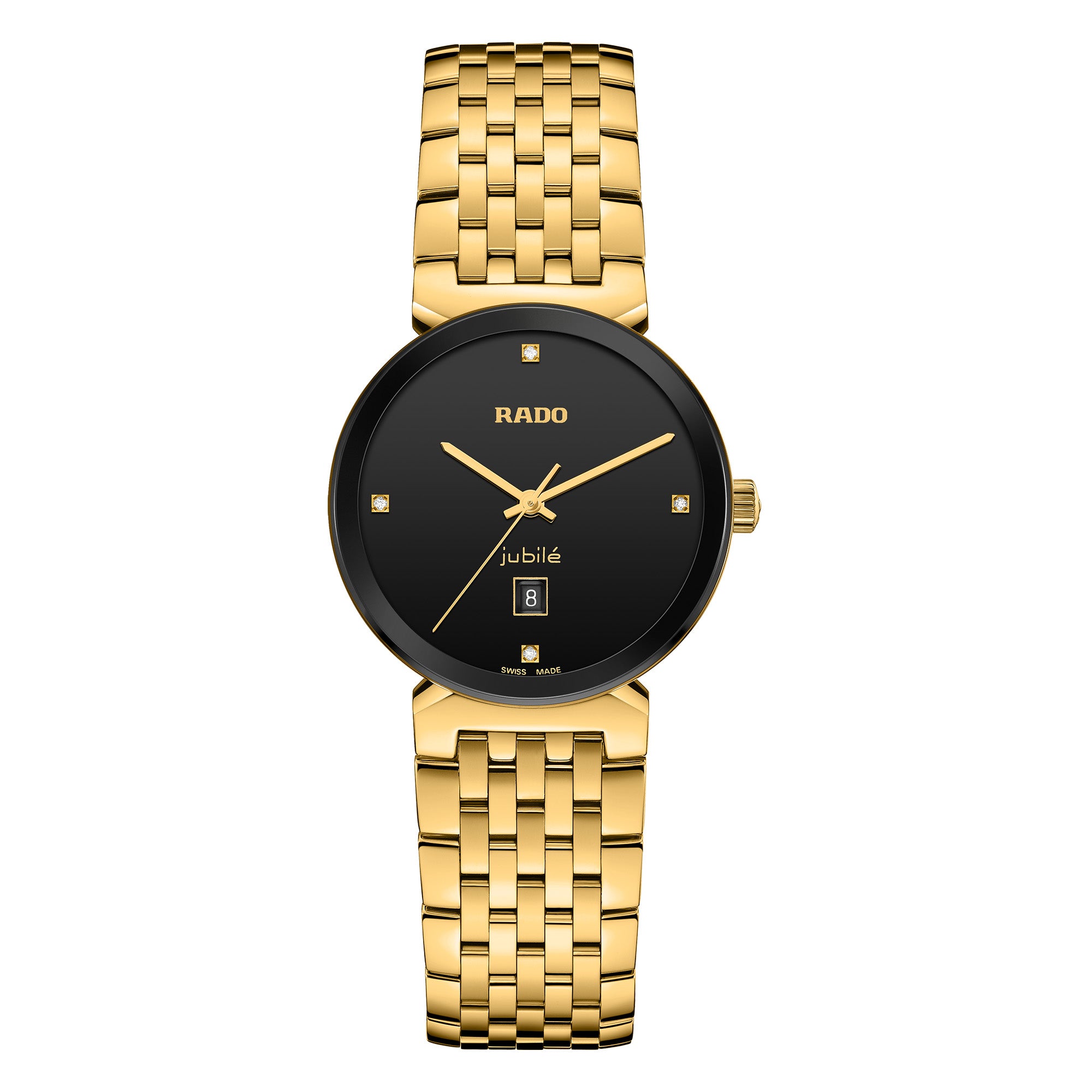"RADO  FLORENCE DIAMONDS CASECASE MATERIALS: STAINLESS STEEL / PVDCASE THICKNESS: 7.8 MMCASE WATER RESISTANCE: 5 BAR (50 M)CASE COLOUR (WEB): COLOUREDCASE DIMENSION: 30.0 MMCASE CRYSTAL: SAPPHIRE CRYSTALDIALDIAL COLOUR: BLACKDIAL SKELE"