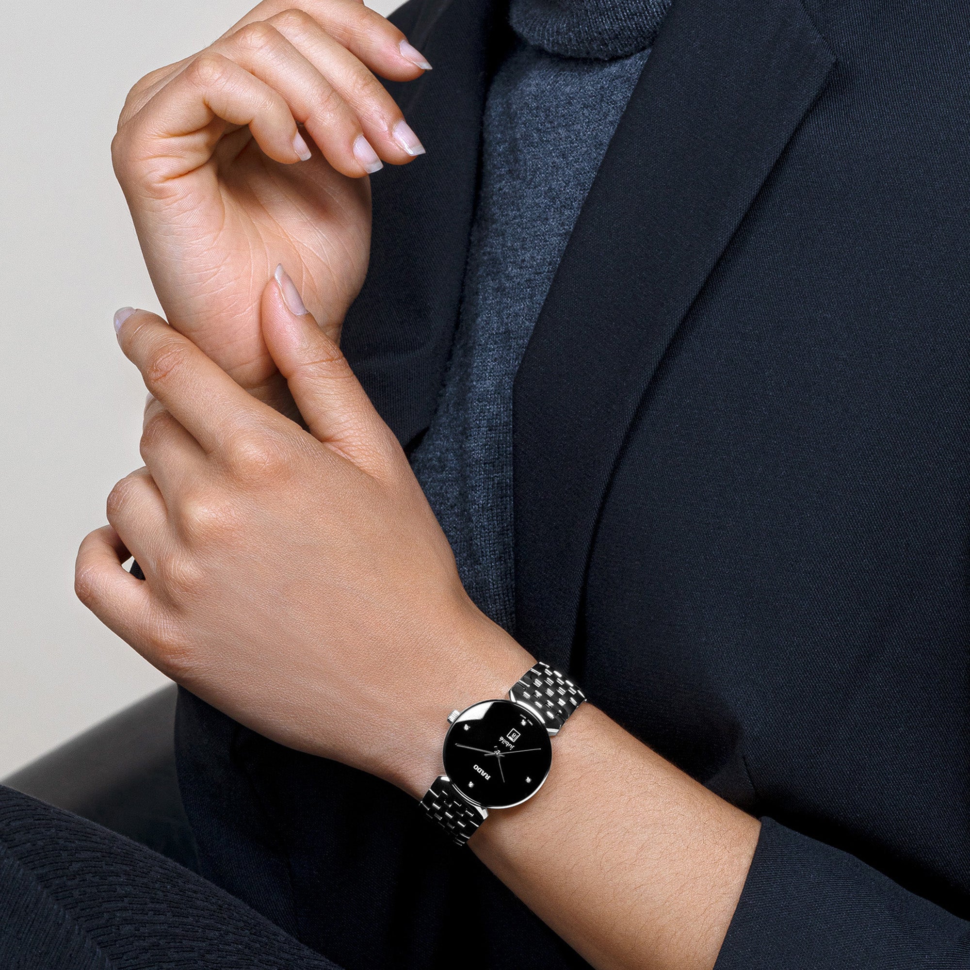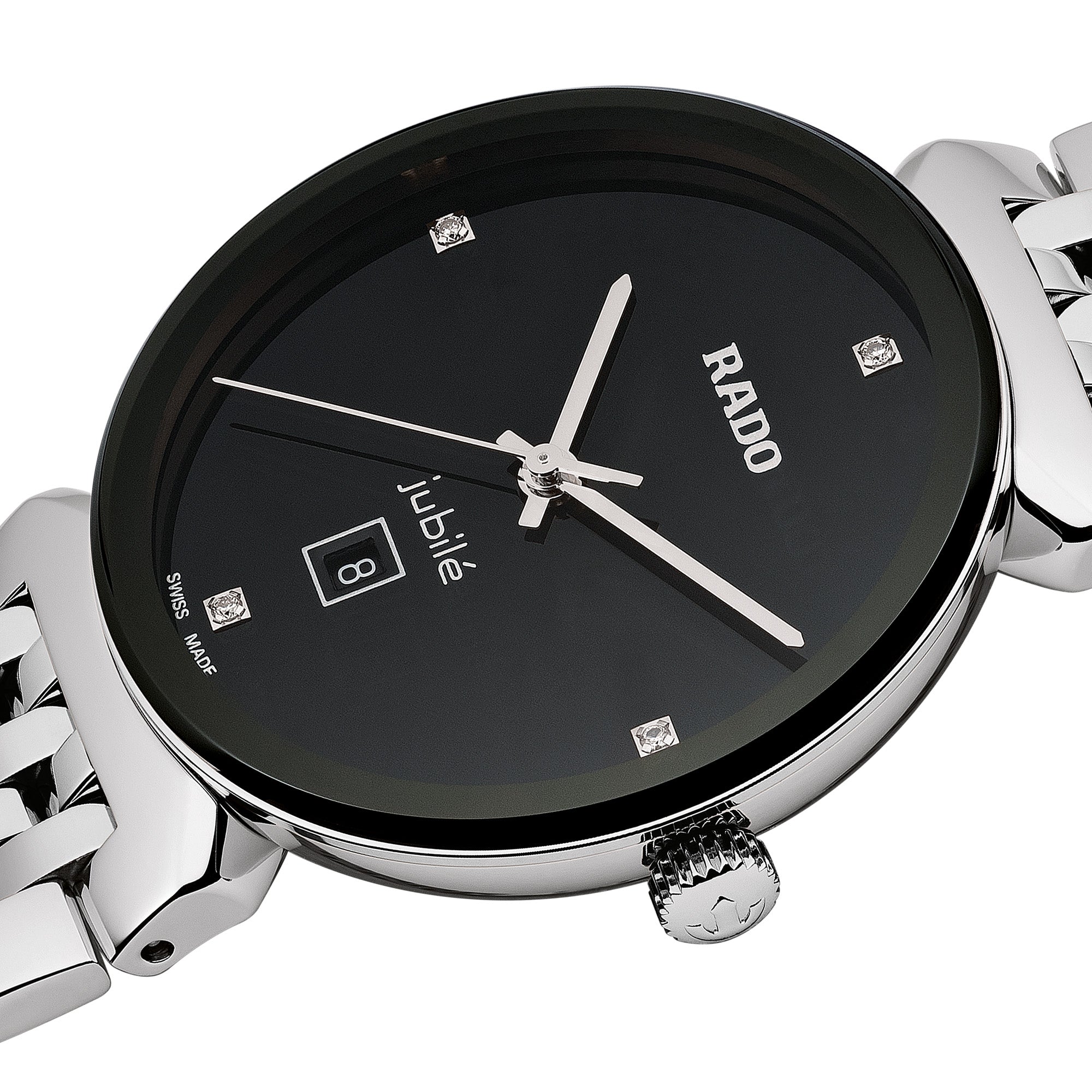 RADO FLORENCE DIAMONDS CASECASE MATERIALS: STAINLESS STEELCASE THICKNESS: 7.8 MMCASE WATER RESISTANCE: 5 BAR (50 M)CASE COLOUR (WEB): LIGHTCASE DIMENSION: 30.0 MMCASE CRYSTAL: SAPPHIRE CRYSTALDIALDIAL COLOUR: BLACKDIAL SKELETON / OPEN
