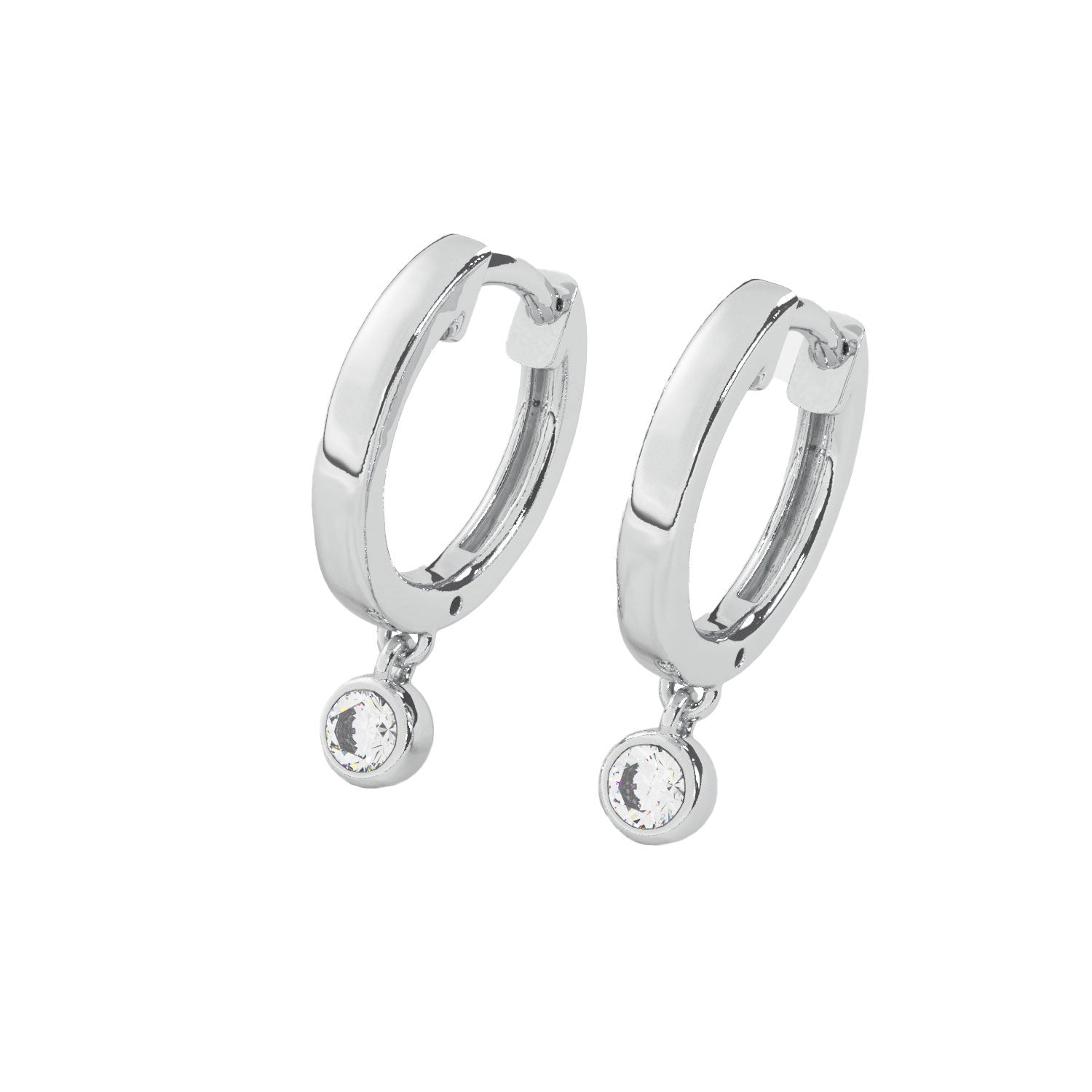 Plain Huggie With Diamond Bezel Dangle Earrings